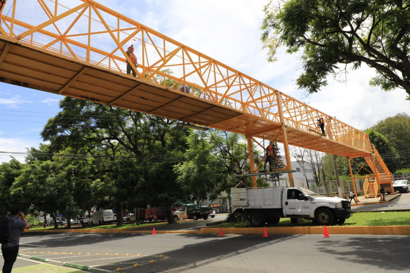 Como parte del programa permanente de mejora de la imagen urbana, personal del Ayuntamiento realizó labores de mantenimiento en el puente peatonal de la avenida Adolfo Ruiz Cortines, frente a las instalaciones del Centro de Alta Especialidad (CAE) “Doctor Rafael Lucio”.