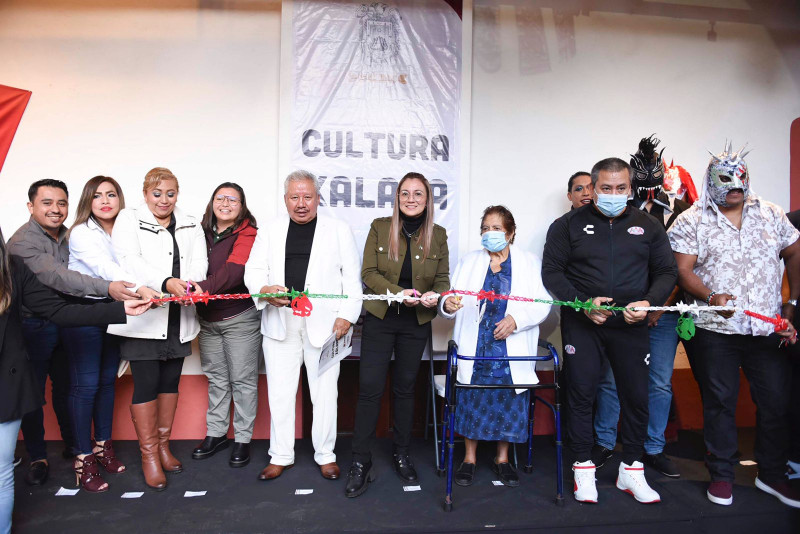 Xalapa, Ver.- Para mostrar la riqueza y creatividad de dos grandes manifestaciones de la cultura popular mexicana, a propósito del mes patrio, autoridades municipales inauguraron en el Centro Recreativo Xalapeño (CRX) “¡A darle, esto es México!, piñatas y lucha libre”, muestra colectiva sobre esta disciplina deportiva y piñatería realizada con una técnica no tradicional.
