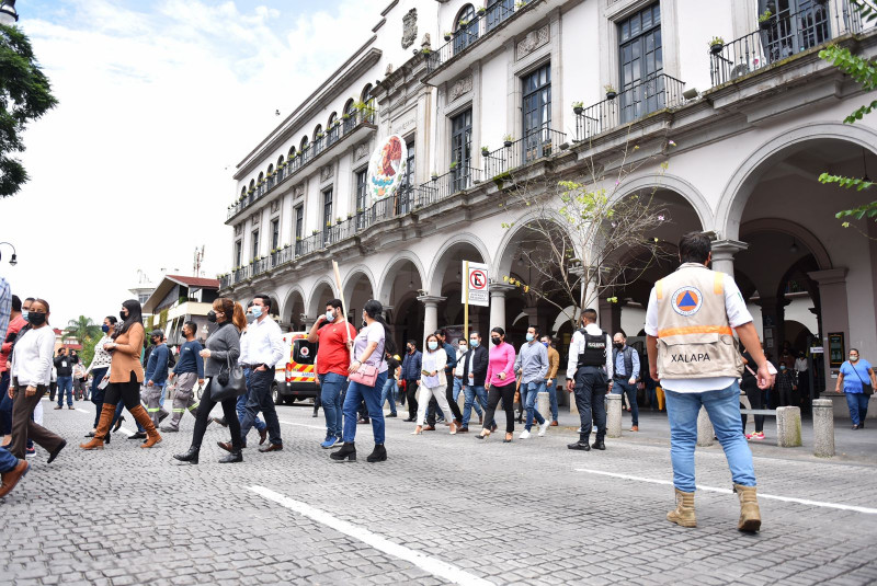 Xalapa, Ver.- Con un tiempo total de tres minutos y la evacuación de 681 personas, el Ayuntamiento participó en el Simulacro Nacional de Inmuebles 2022, iniciativa para fortalecer la cultura de la prevención entre la comunidad, afirmó el secretario del Ayuntamiento, Ramón Antonio Ramos Niembro.