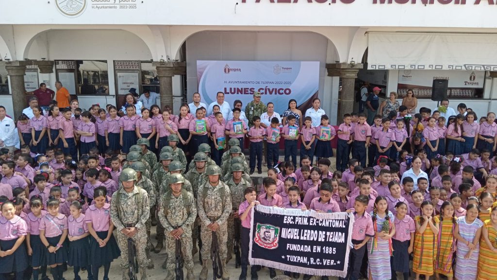 El H. Ayuntamiento de Tuxpan realizó el lunes cívico que marca el inicio del ciclo escolar 2024 – 2025, en la plaza cívica. Participaron alumnas, alumnos y personal docente de la escuela primaria Miguel Lerdo de Tejada.