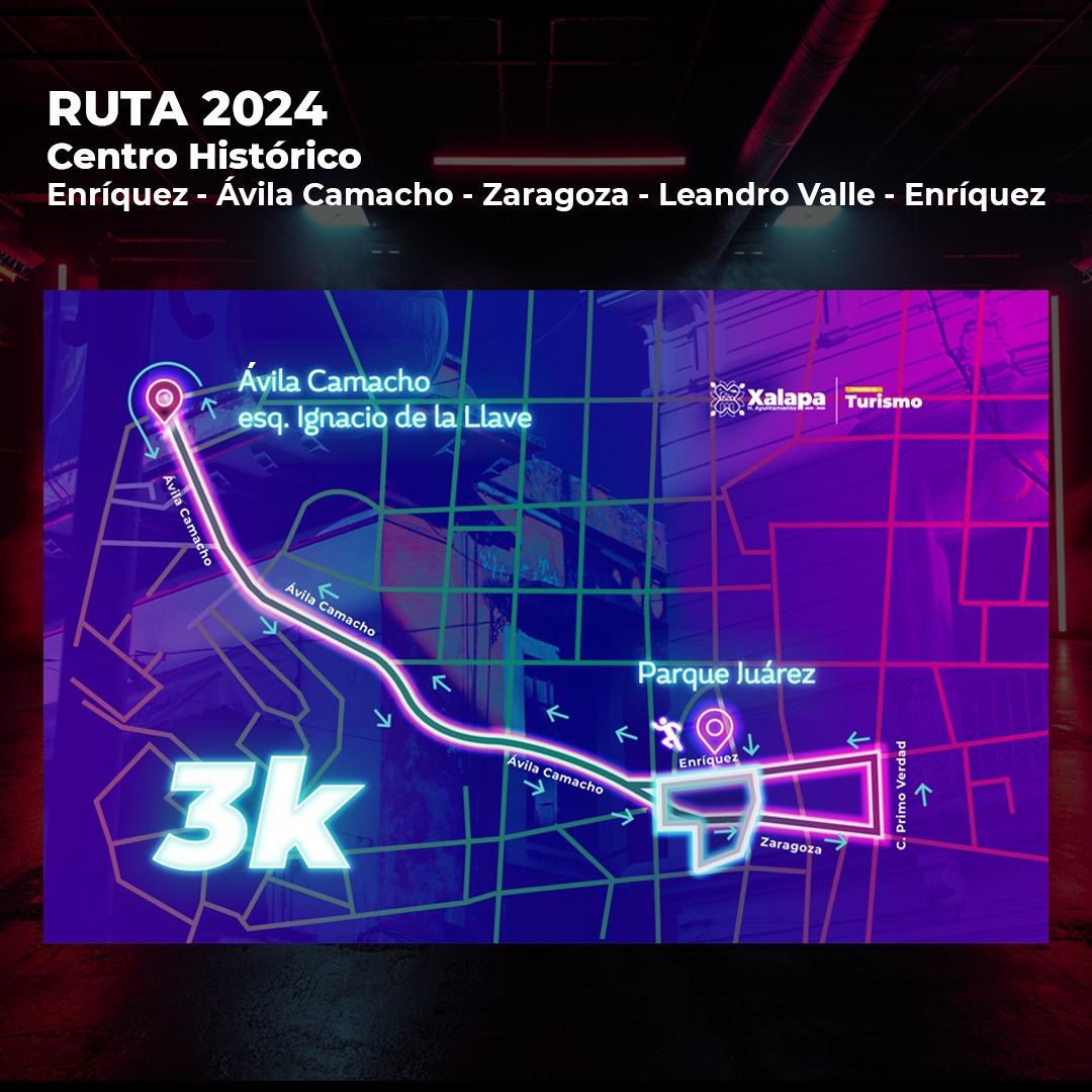 Xalapa, Ver.- Por la celebración de la tercera edición de la carrera “Tourism Color Run Xalapa 2024”, esta tarde habrá cortes a la circulación vial en varios puntos de la zona Centro a partir de las 18:00 horas.