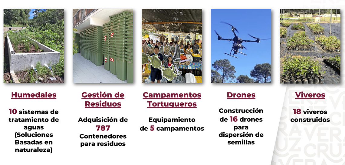 Otro de los proyectos fue el establecimiento, equipamiento y tecnificación de viveros municipales y escolares que producen 600 mil árboles anualmente, uno de los más grandes ubicado en el Instituto Tecnológico Superior de Huatusco que aporta 200 mil plantas.