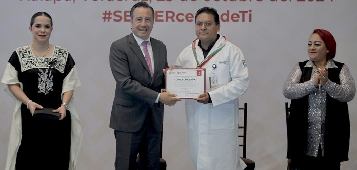 “Recibimos un sistema desgarrado, saqueado y casi privatizado; la reversión de esa política demandó una gran inversión”, dijo en el evento por el Día del Médico y la Médica, donde entregó la medalla Doctor Pedro Rendón Domínguez a Jaime Omar Jiménez Sandoval, especialista en Inmunología Clínica y Alergia, adscrito a los Servicios de Salud de Veracruz (SESVER) y el IMSS en Río Blanco y Orizaba.