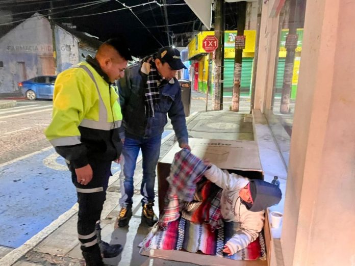 Ante ello, se les hace entrega de cobijas para que puedan hacer frente a los efectos del frente frío 24. Toda esta noche y madrugada del miércoles se mantendrá el operativo.