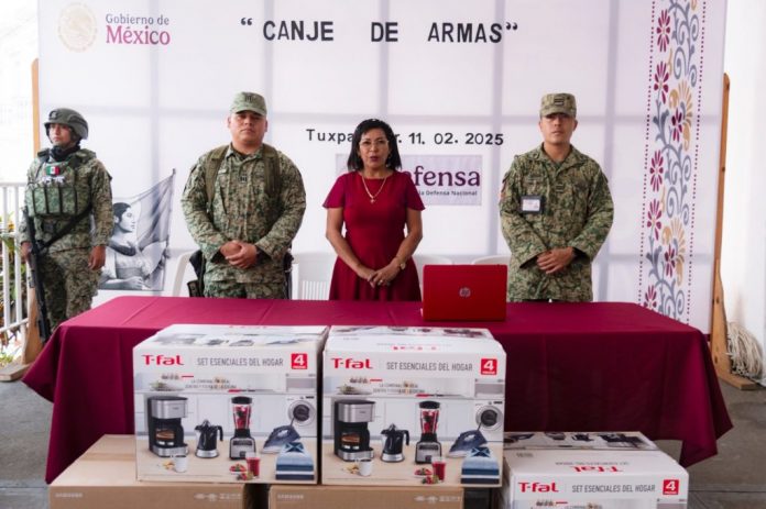 Se invita a la población a que acuda mañana, de 9:00 a 13:00 horas, al módulo que estará instalado en la plaza cívica, en el que podrán cambiar cualquier tipo de armamento que tengan en su posesión por un electrodoméstico o estímulo económico, de acuerdo con el «Tabulador de armas, municiones y explosivos».
