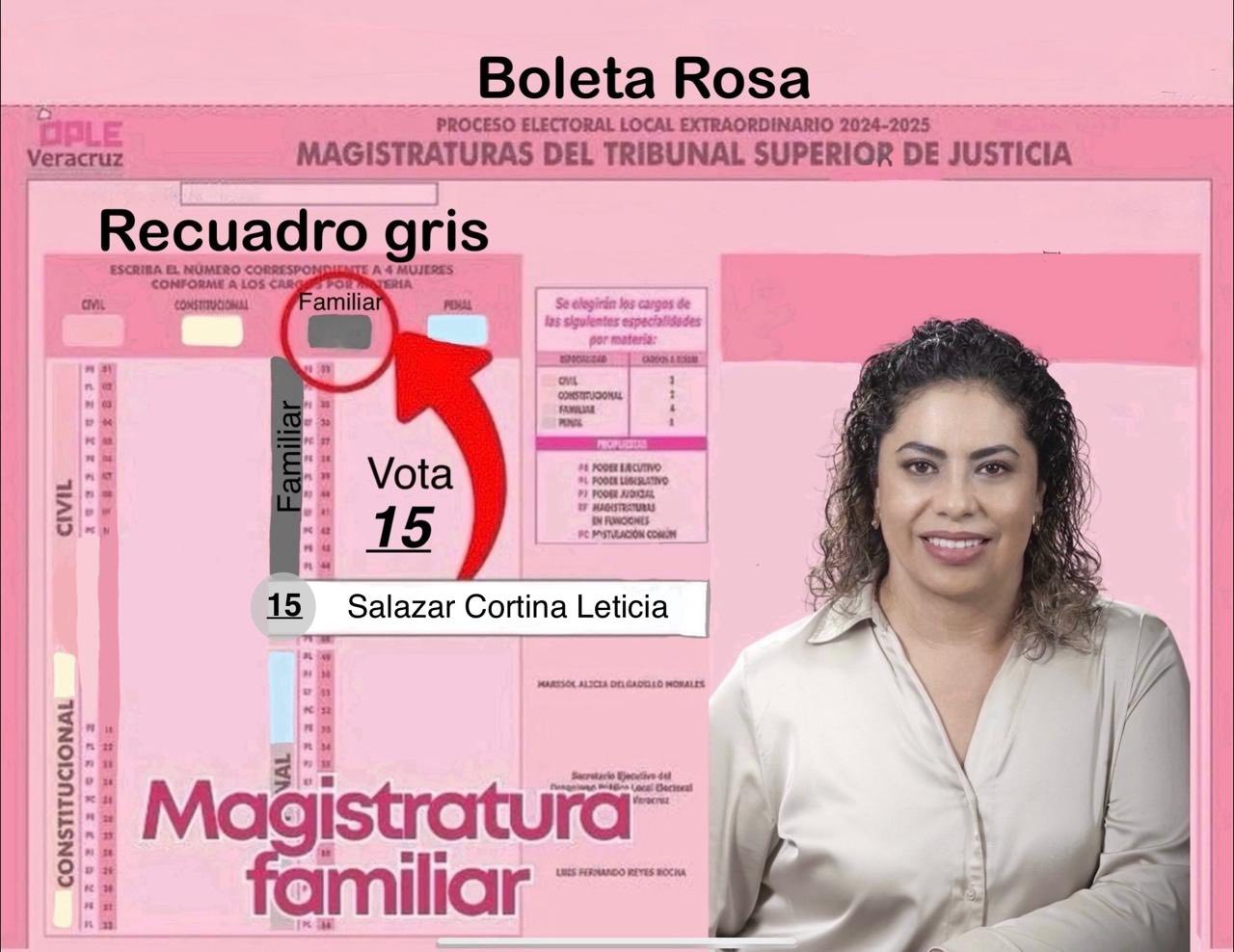 Se trata de Leticia Salazar Cortina, candidata a una magistratura familiar.