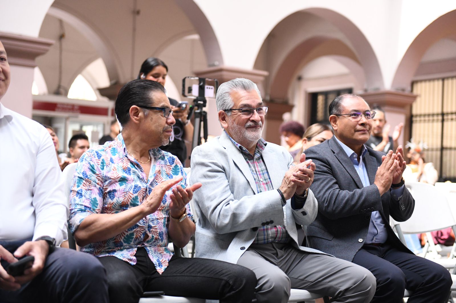 Asistieron los regidores Carlos Ortega Murguía, Diego David Florescano Pérez, Martín Victoriano Espinoza Roldán; el secretario del Ayuntamiento, Enrique Córdoba Del Valle, representantes de cámaras empresariales, de los grupos artísticos participantes y funcionario municipal.