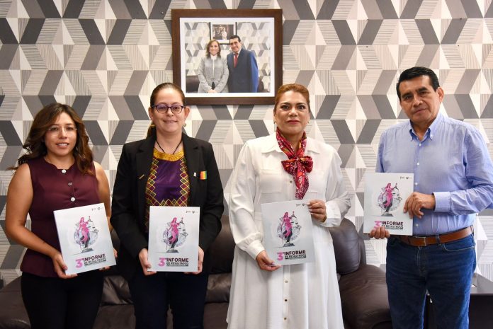 Xalapa, Ver., 29 de agosto de 2025.- El Congreso del Estado de Veracruz, representado por la presidenta de la Mesa Directiva, diputada Tanya Carola Viveros Cházaro, por el presidente de la Junta de Coordinación Política (Jucopo), diputado Esteban Bautista Hernández, y por la presidenta de la Comisión Permanente de Hacienda del Estado, diputada Naomi Edith Gómez Santos, recibió de la magistrada presidenta Lisbeth Aurelia Jiménez Aguirre el Tercer Informe de resultados del Poder Judicial del estado, en cumplimiento de lo dispuesto en la Ley Orgánica del Poder Judicial y demás disposiciones constitucionales en materia de transparencia y rendición de cuentas.
