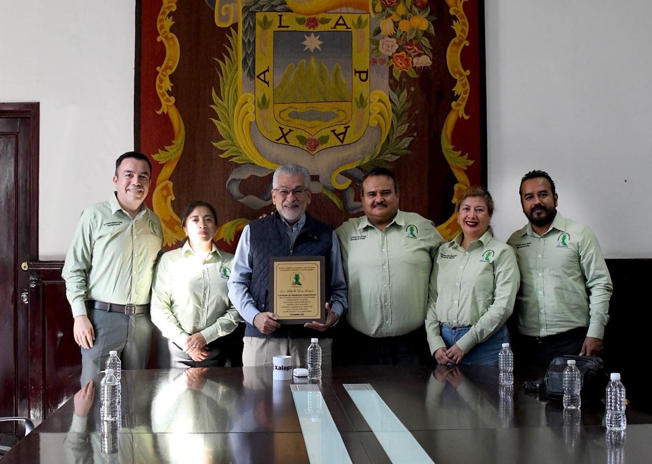 Xalapa, Ver.- Por el trabajo realizado en beneficio de la sociedad, la apertura al diálogo y atención brindada a las necesidades de la plantilla laboral, dirigentes del Sindicato de Trabajadores Independientes de la Comisión Municipal de Agua Potable y Saneamiento de Xalapa entregaron un reconocimiento al alcalde Alberto Islas Reyes.